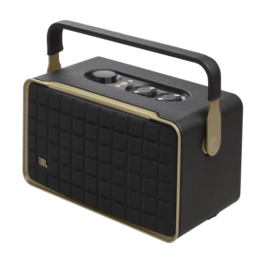 Enjoy retro style, amazing audio, and built-in dual voice assistants* anywhere in your home. With the JBL Authentics 300 speaker’s leather-like enclosure, convenient metal handle, and built-in rechargeable battery, you can take your music with you—from the kitchen for your dinner-prep playlist to the bedroom for your wind-down podcast. Its retro ’70s-inspired design featuring the iconic Quadrex grille makes a bold statement anywhere you set it down. And so do its wide soundstage, crystal-clear highs, and deep bass. With Google Assistant and Amazon Alexa available simultaneously*, you can play your favorite music, control your smart home devices, and more, hands-free, using just your voice.