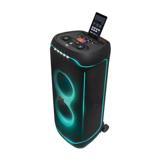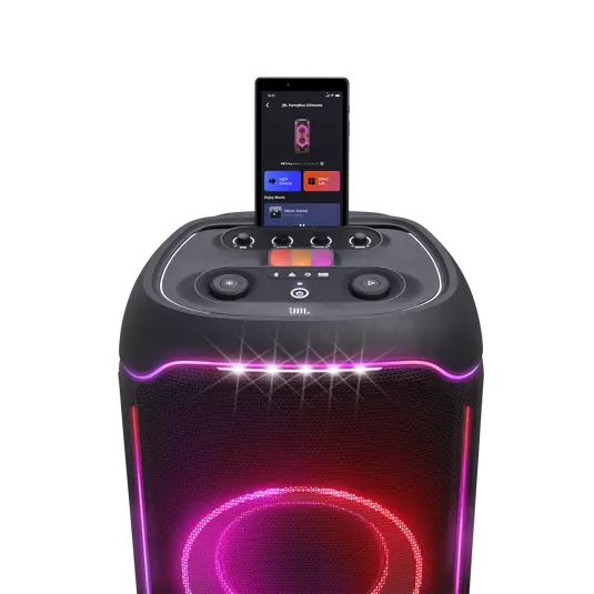 The JBL PartyBox Ultimate can cover a massive space—we’re talking two basketball courts—with superior Original JBL Pro Sound. Featuring two drivers and mid range speaker to deliver louder sound. Dual tweeters and a pair of subwoofers means there’s going to be more than enough bass for even the most dedicated fans, while Dolby Atmos* provides immersive 3D spatial effects. This is the kind of thunderous sound you’ll not just hear, but feel. * A subscription to a high definition music service is required in order to listen to immersive music in Dolby Atmos. Please check subscription fees in your region.