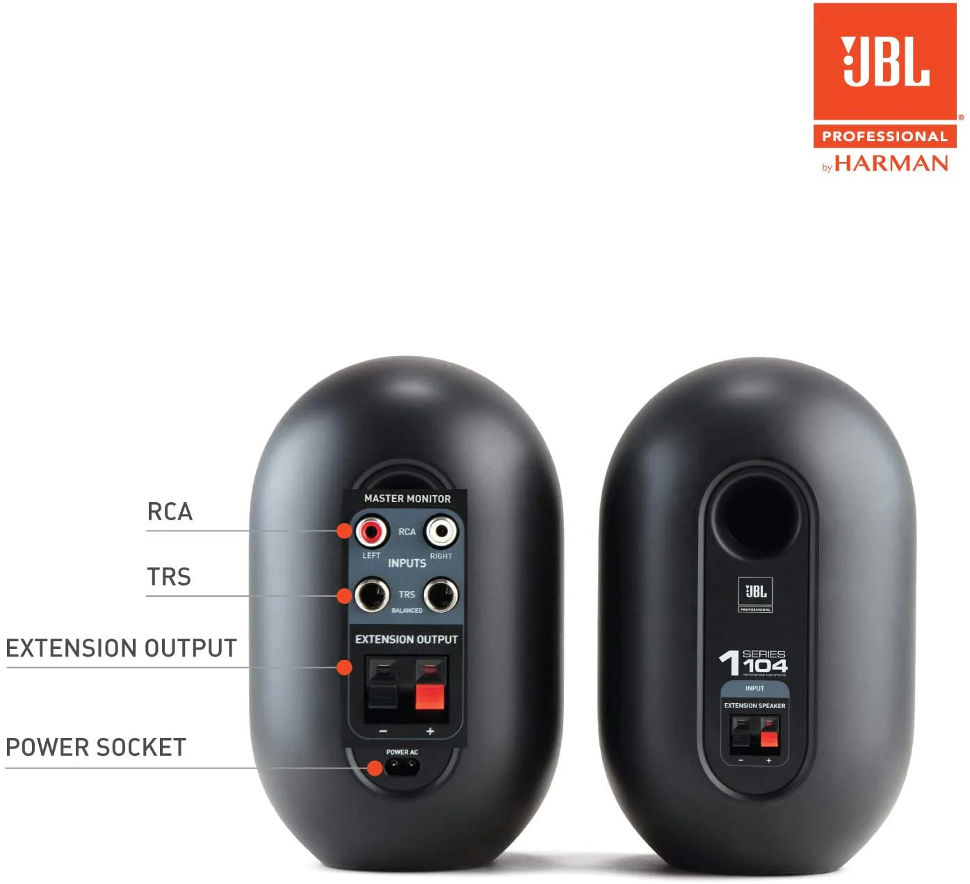 Ideal for home recording enthusiasts, podcasters and video producers, as well as professionals seeking accurate portable reference monitors, JBL 104s combine powerful 4.5-inch (118 mm) low-frequency drivers with coaxial .75- inch (19 mm) soft-dome tweeters, potent 60-watt amplification and innovative acoustic design to provide exceptional imaging, neutral frequency response and crisp detail in our smallest, most affordable reference monitor yet. With their sleek, elegant design and compact form factor, they’ll make a stunning statement in any home or pro studio while conserving valuable work space. Creative professionals and music lovers alike can count on the JBL 104 to deliver a reliable sonic reference and a truly enjoyable listening experience, all at an attractive price point.
