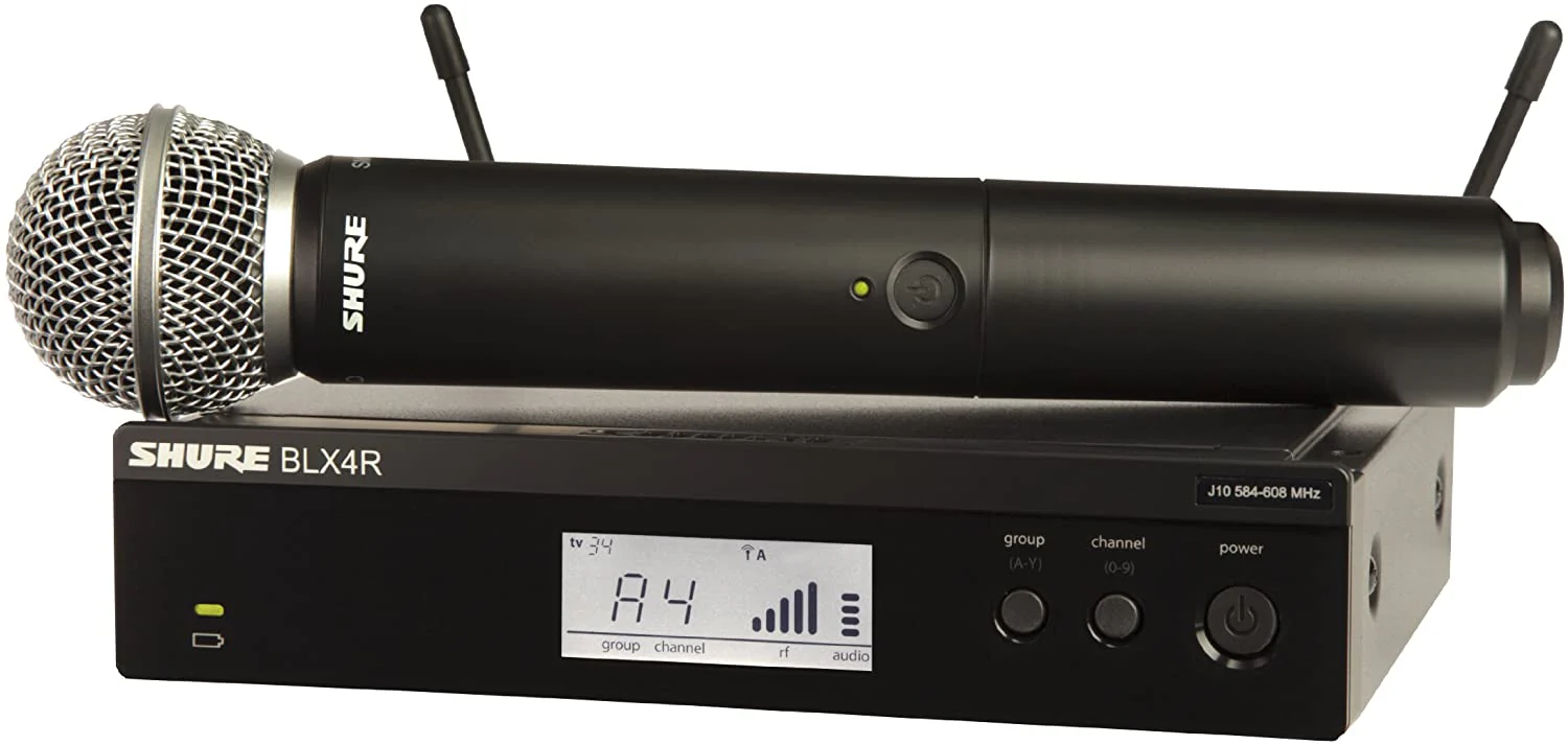 - Includes: (1) BLX4R 1/2 Rack, Single Channel Wireless Receiver, (1) Rack Mount Kit, (1) BLX2/PG58 Handheld Transmitter with PG58 Microphone, (1) Mic Clip, (2) 1/4 Wave Antennas, (1) Zippered Transmitter Bag, (1) PS23US Power Supply and (2) AA Batteries