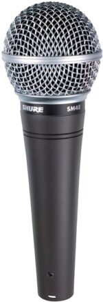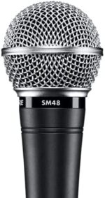 The SM48 unidirectional dynamic microphone is a great performance microphone. It maintains a true cardioid pattern throughout its frequency range, ensuring high gain before feedback and rejection of off-axis sound. The tailored frequency response is ideal for lead vocals, backup vocals, and spoken word applications. A presence rise brightens mid-range performance, and a low frequency roll off controls proximity effect. The SM48 includes a shock-mounted cartridge, a steel mesh grille, and an integral “pop” filter.
